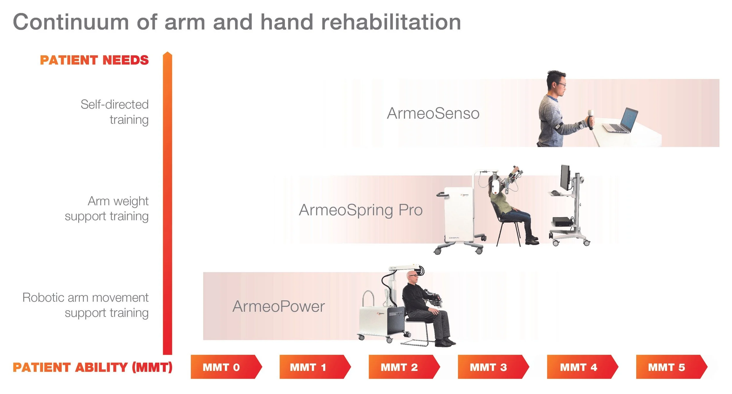 Armeo® Power es un dispositivo avanzado de rehabilitación de brazo y mano para pacientes en fase aguda de rehabilitación. Incluso cuando no son capaces de realizar movimientos voluntarios.